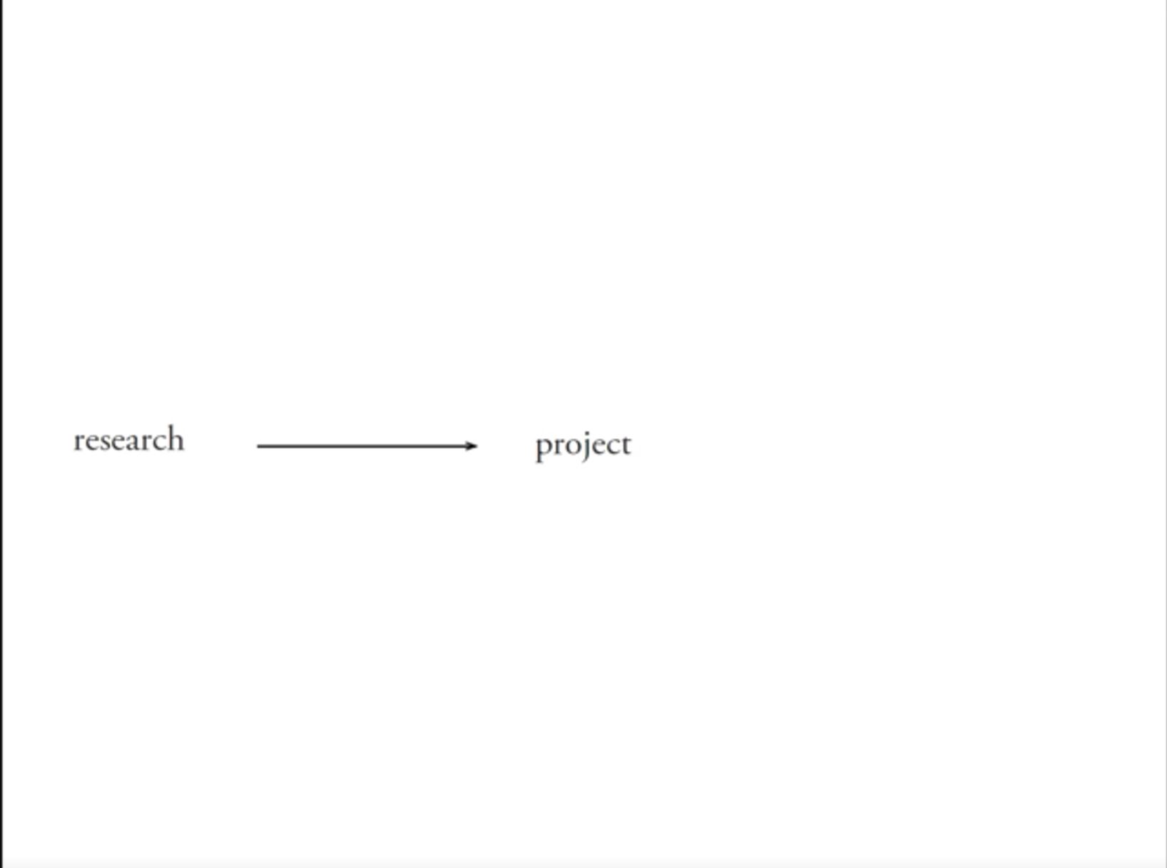 Traditionally, you know, research is instrumentalized, or in service of a particular project. As a designer with a firm, you’re given a project with a scope, a limit of work, a budget, and all of that has been defined before you enter the scene, which was mentioned earlier. And so research is largely shaped by that defined scope. And it’s a tool, it’s an instrument in service of the services you’ve been requested to provide. And then you get a bunch of projects. Ideally some of those strands of research start to reinforce one another if you’re lucky. And then you maybe invest a little bit of time contributing research yourself that’s maybe not tied to a project in order to find a clarified body of work or set of methods that you’re testing.